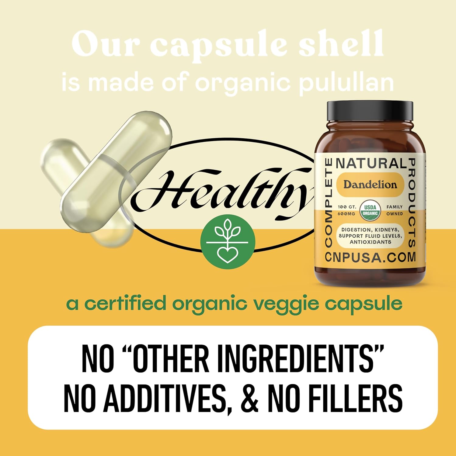 Complete Natural Products Dandelion Root Capsules are an excellent choice for liver and gallbladder detoxification while promoting healthy digestion. This natural supplement aids bile flow, enhancing the effectiveness of vitamins and nutrients. Ideal for kidney cleansing or soothing upset stomachs, these capsules are free from additives and fillers. They provide potassium and essential vitamins, including B6 and folate. Manufactured in the USA, the capsules are gluten-free and vegetarian, containing no artificial ingredients or preservatives. Choose Complete Natural Products for a natural approach to wellness and digestive support. Perfect for anyone seeking holistic health benefits.