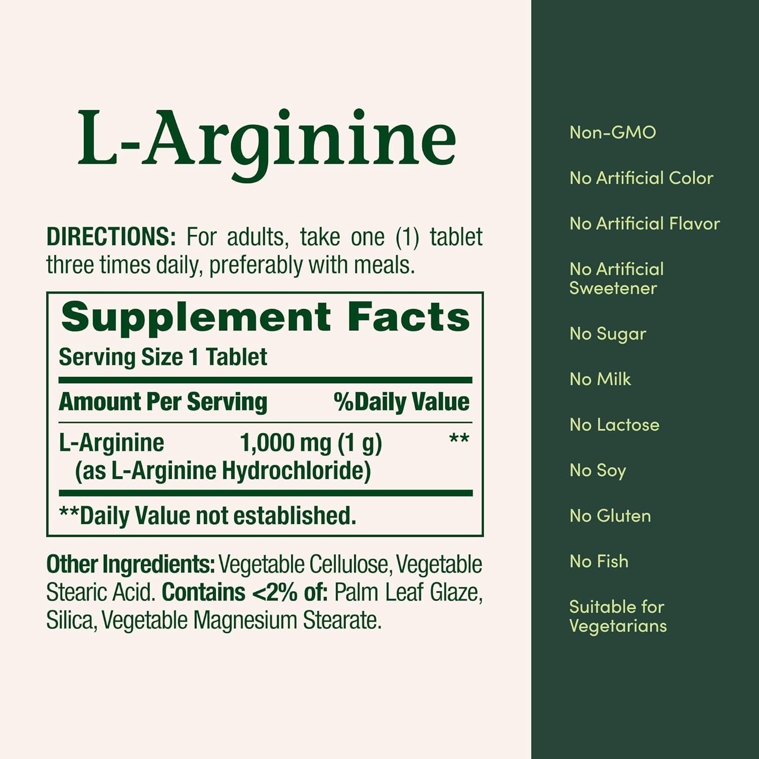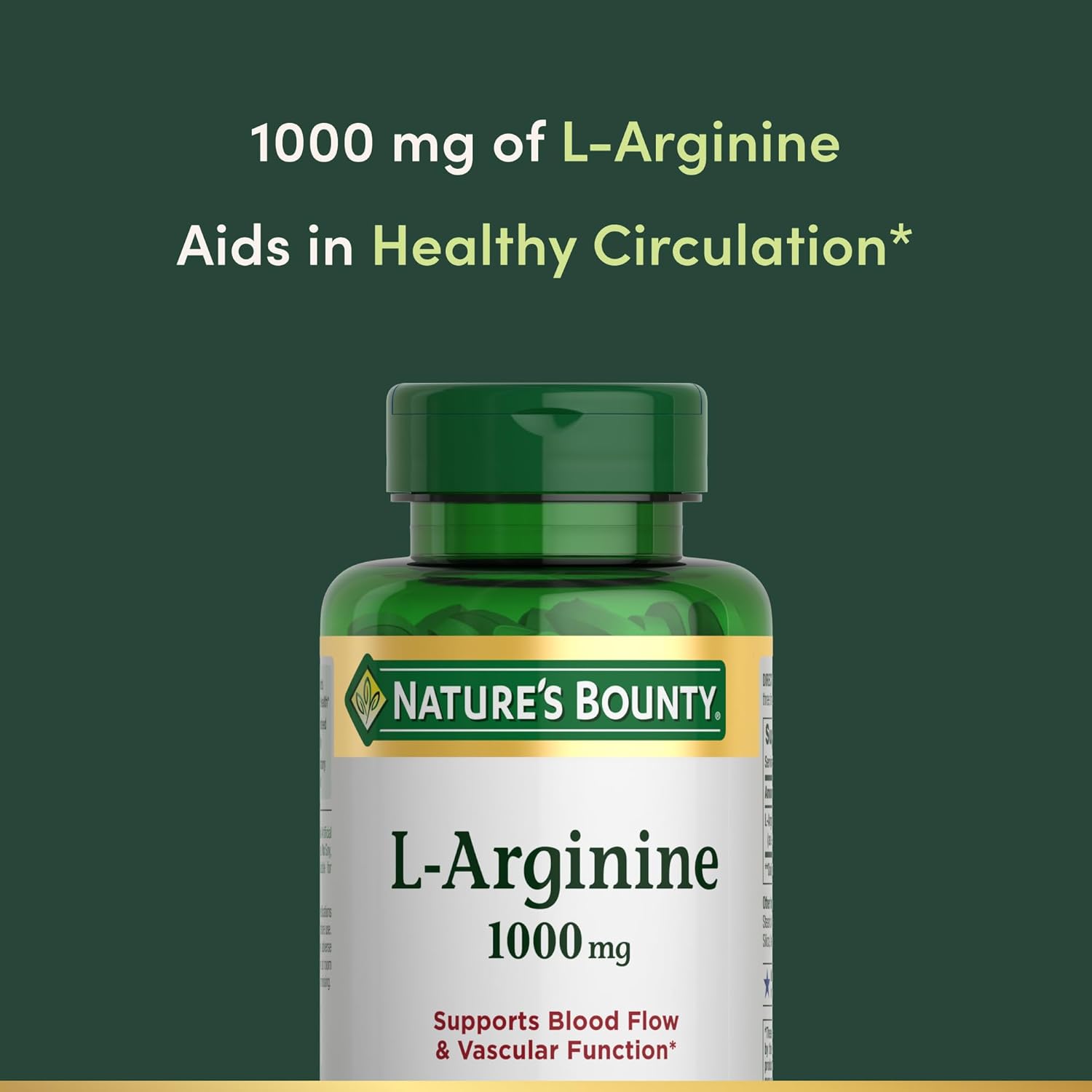 Nature’s Bounty L-Arginine 1000mg tablets are designed to enhance blood flow, support vascular function, and promote heart health. This organic amino acid aids in nitric oxide synthesis, improving circulation and potentially boosting exercise performance. Each tablet serves as a protein building block, sourced from natural foods like red meat, fish, and nuts. These vegetarian, non-GMO, and gluten-free tablets contain no artificial colors, flavors, or sweeteners. For optimal results, adults should take one tablet three times daily with meals. Experience the quality and expertise from Nature’s Bounty, backed by over 50 years of dedication to developing premium supplements.