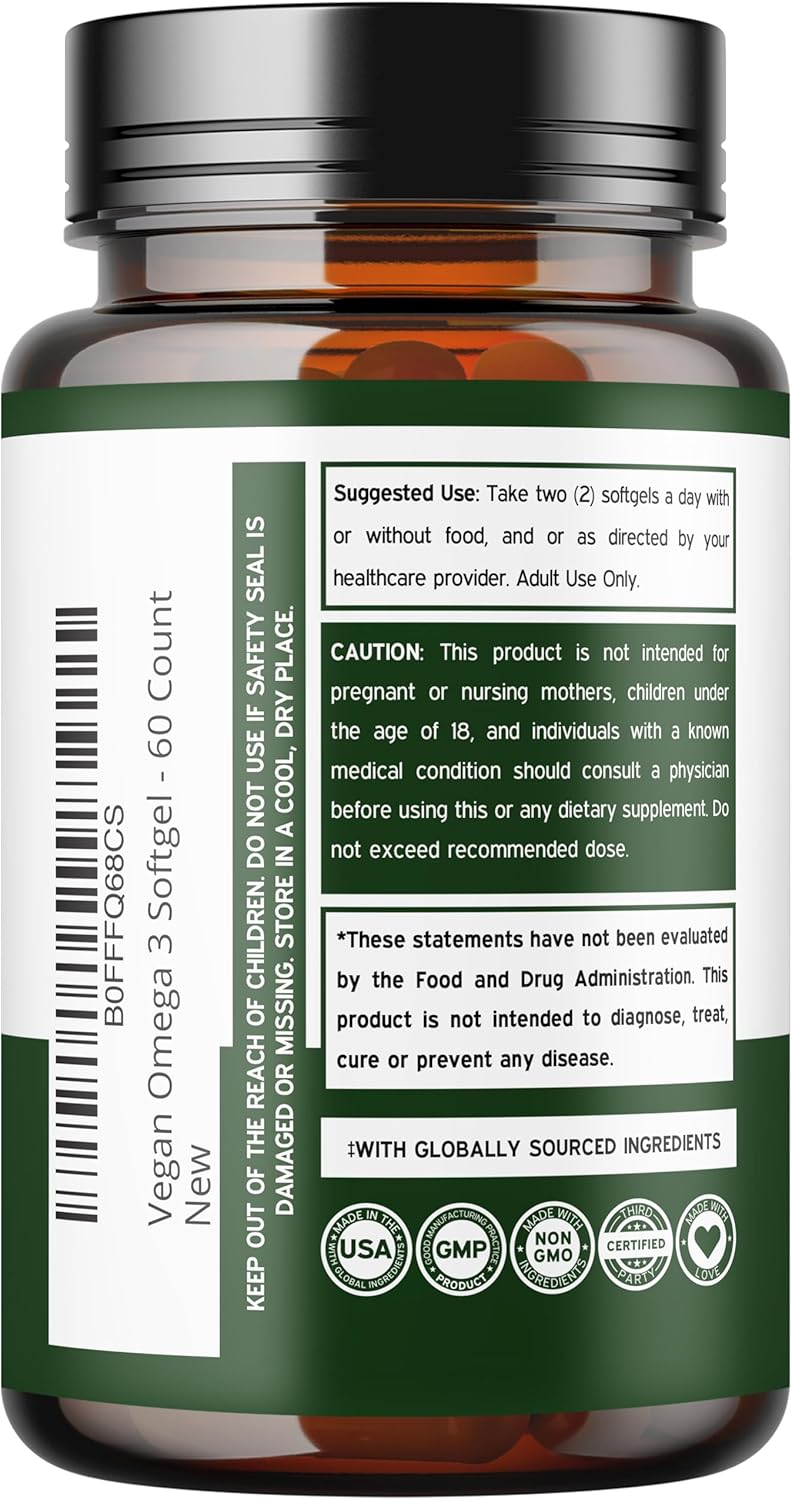 Vegan Omega 3 Algae Oil (60 Softgels) Plant Based DHA EPA – …